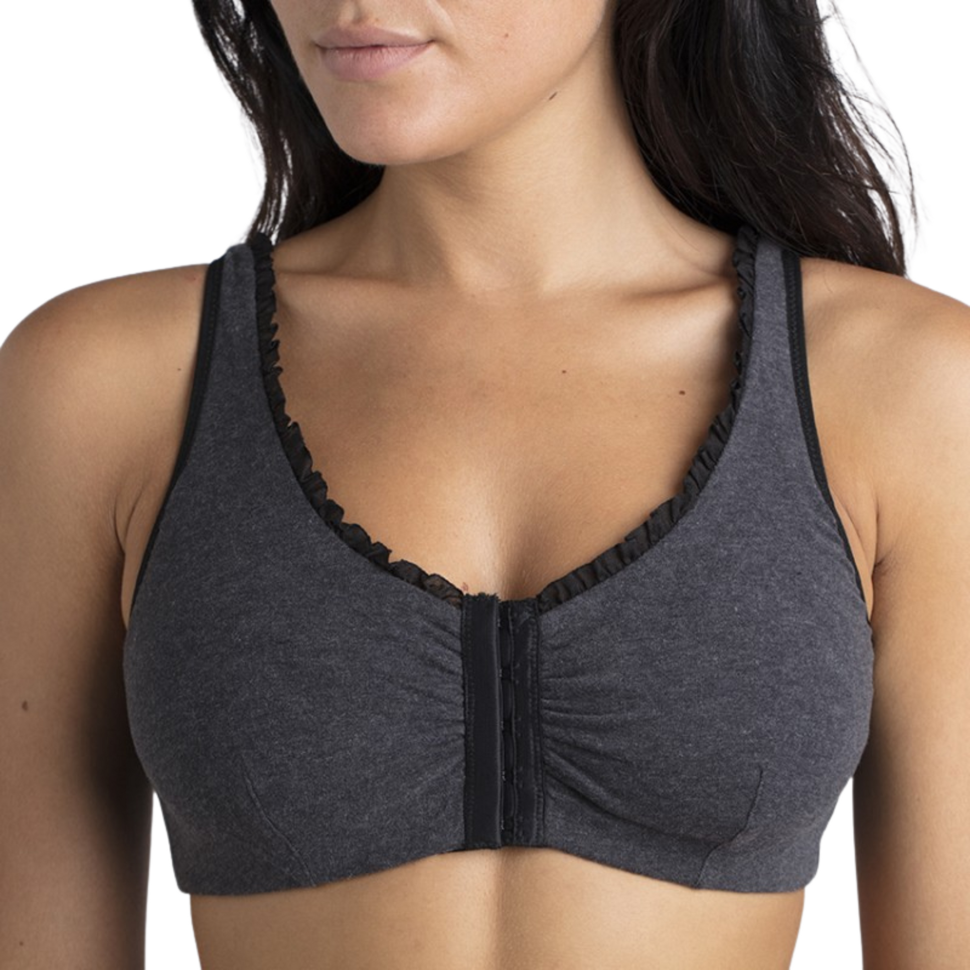 Doté d’une ouverture frontale par agrafes, ce modèle est facile à enfiler, même avec une mobilité réduite des bras. Sa coupe entièrement doublée limite les frottements et prévient toute irritation. Il est également équipé de poches intérieures bilatérales, conçues pour accueillir une prothèse mammaire externe en toute sécurité.